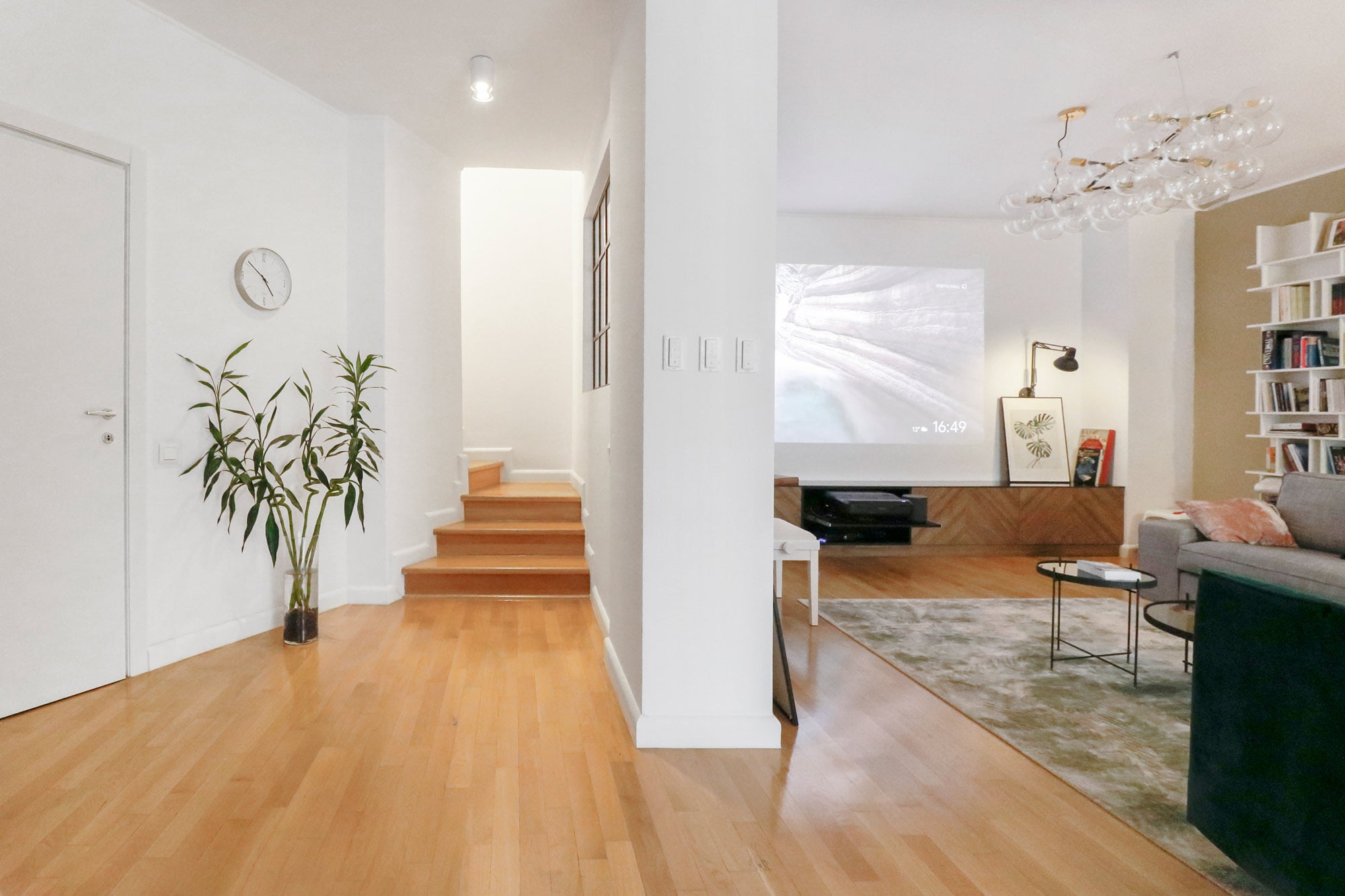O amenajare armonioasă, definită de linii simple, texturi naturale și materiale premium, precum MDF-ul lucios. Amenajarea este una luminoasă, primitoare, fiind potențată de culorile binele alese. Influențele de design sunt scandinave, minimaliste.